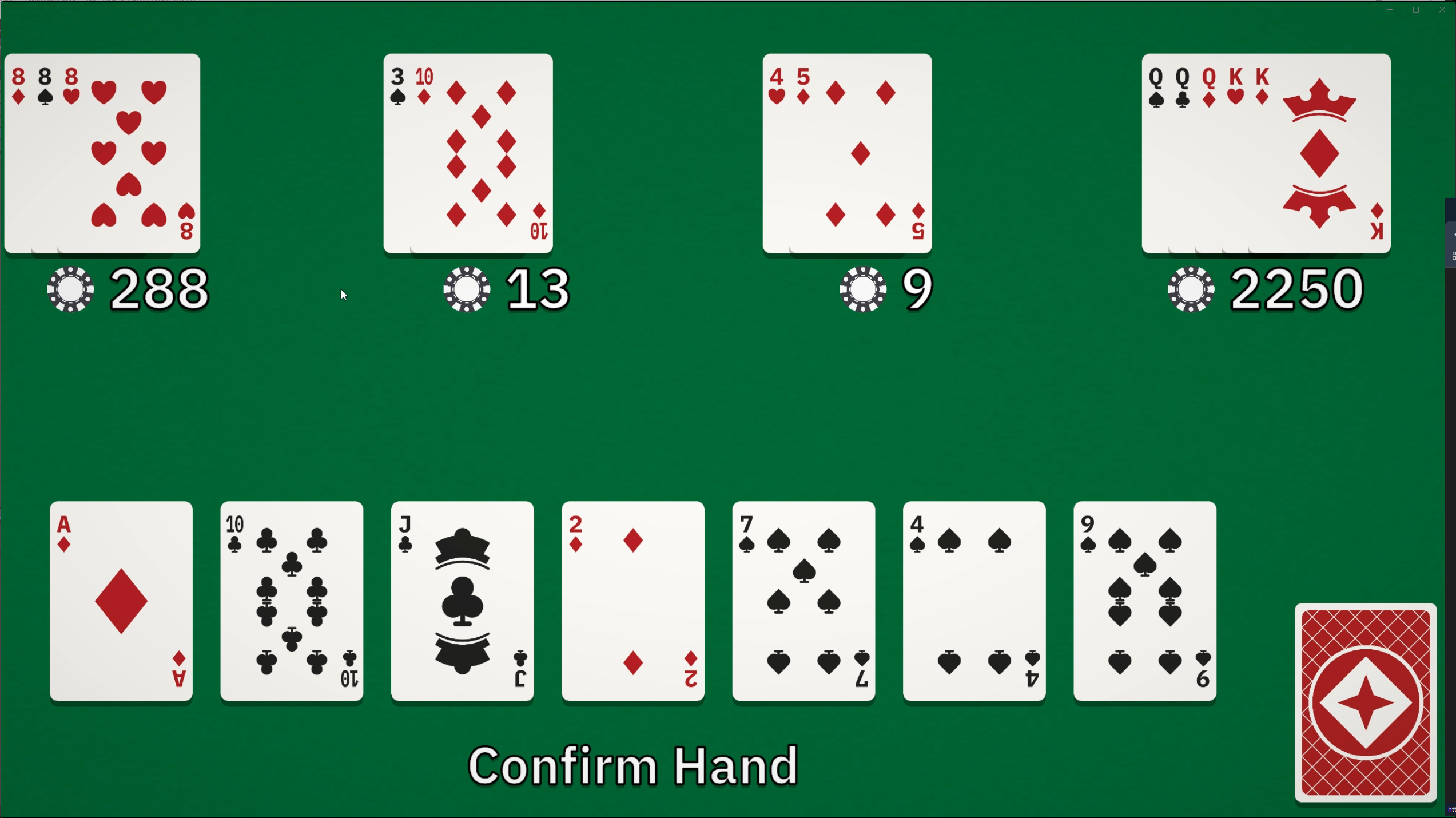 Click the confirm button at the bottom to get it scored and have those cards replaced.